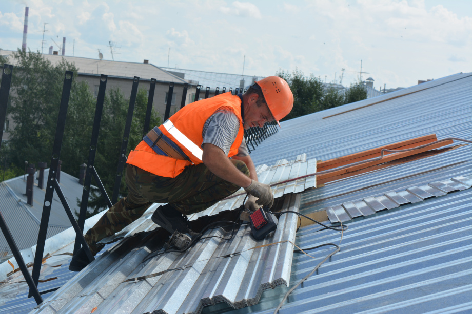 Как строительные и проектные требования, члены бригады выполняют и требования техники безопасности при работе на высоте. Это снизу кажется, что пятиэтажка по сравнению с современными высотками не велика. Но когда глядишь вниз с ее крыши, без привычки дух захватывает. Поэтому на каждом члене бригады кроме защитной каски в обязательном порядке страховочный пояс с закрепленной прочной веревкой. Кроме того, сам бригадир находится рядом, когда кто-то из бригады работает в опасной близости от края крыши.