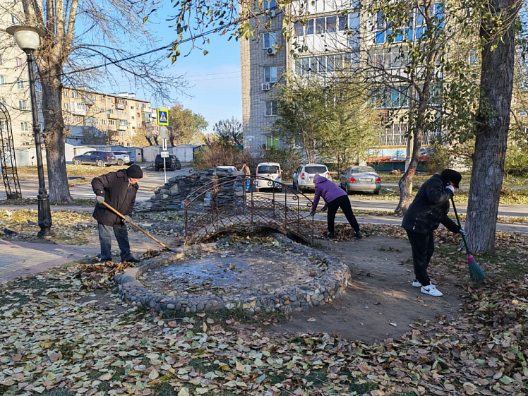Листву, ветки и мусор собрали около домов на Калинина, 5б и 4-й Западной, 75; в сквере на Чеглецова, 12; на детских площадках по адресам: улица Маяковского, 4б и Горно-Алтайская, 21; спортплощадке на улице Шевченко; территории между детским садом на улице 40 лет Октября, 4 и зданием ТОС; на клумбе около здания на Германа Титова, 16.