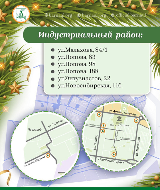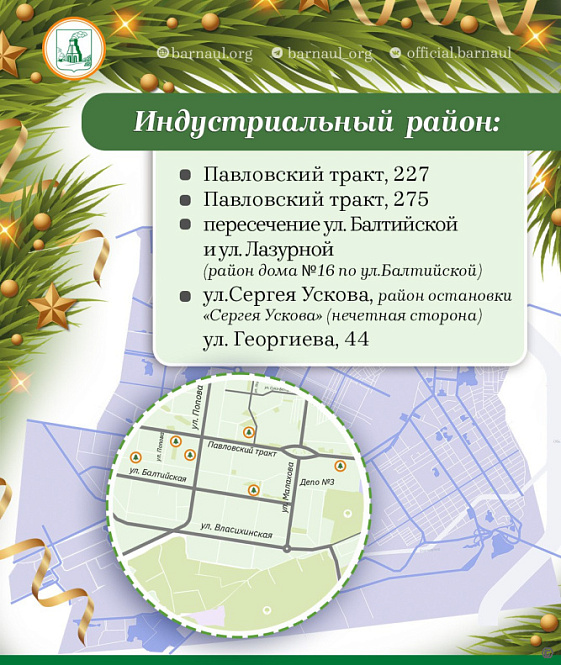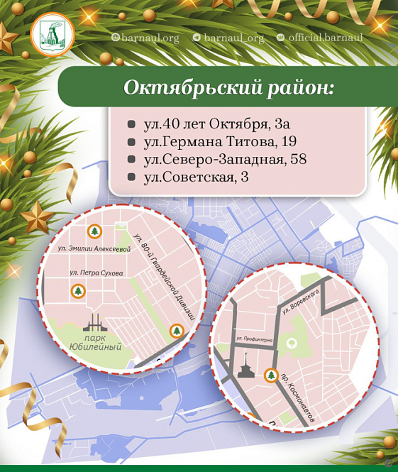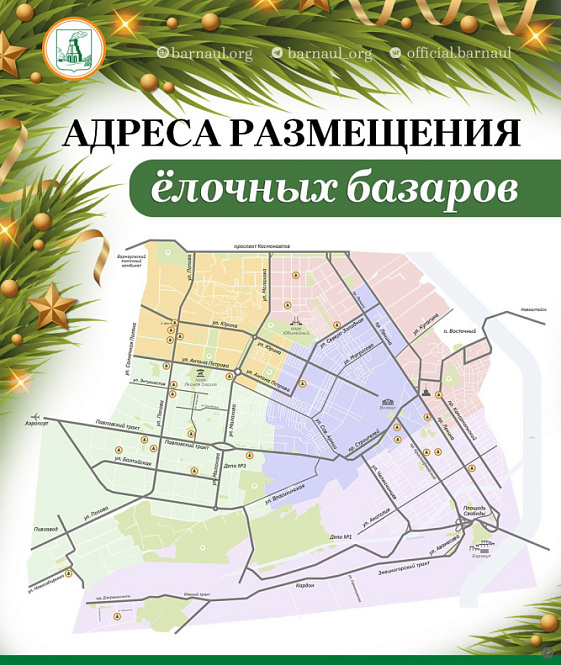 28 ёлочных базаров будут работать на территории Барнаула до 31 декабря 2025 года. Развернутся они после 15-го числа текущего месяца.