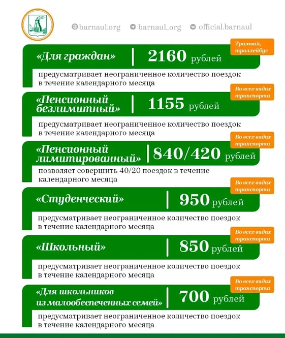 Арина Бегаева добавила, что Барнаул является единственным городом в Алтайском крае, где действует широкая линейка тарифных планов для пассажиров, которая предоставляет возможность выбрать оптимальный для каждого вариант.