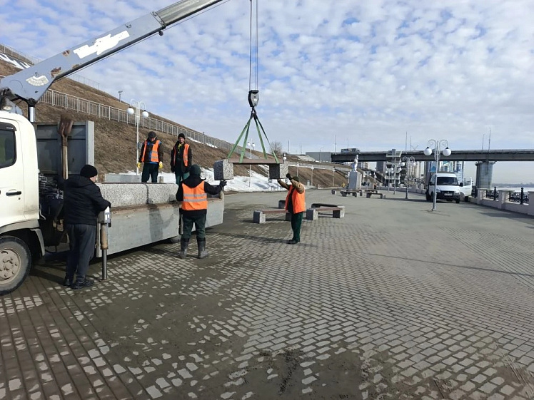 В работах заняты сотрудники МБУ «Благоустройство и озеленение». Вчера они вернули на набережную Оби лавочки. Сначала специалисты провели монтаж, а после — уборку элементов благоустройства, очистив их от пыли и загрязнений.