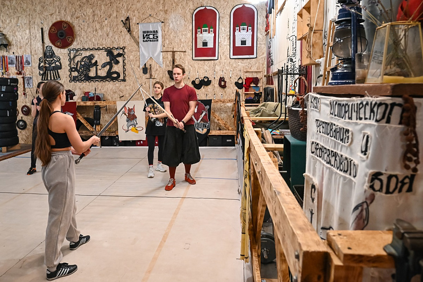 Для начала журналистов познакомили с ведущими направлениями клуба, чтобы вместе определить вид для турнира. Здесь учат бою с одноручным мечом, идущим в паре с большим или с маленьким щитом — баклером. Также есть эстетические или сценические сражения, близкие к театральному искусству, исторической реконструкции. Состязания могут проходить в формате «один на один» или «команда на команду», в каждой из которых от трёх до 12 участников.