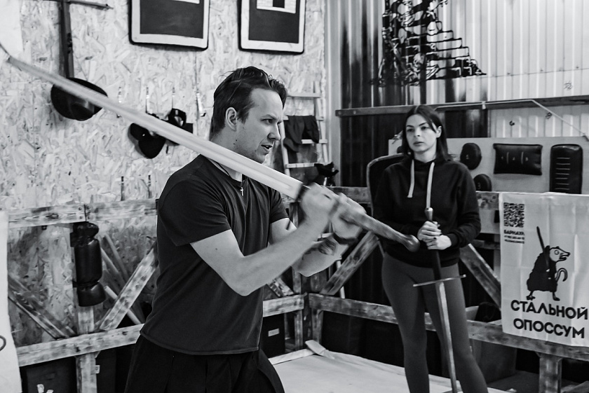 — Техника работы с ним принадлежит германской школе фехтования, её-то мы и будем с вами изучать, — обращается владелец клуба. — Именно на тех территориях зарождался этот вид боя, а те, кто в совершенстве им владел, держали в страхе всю Европу.