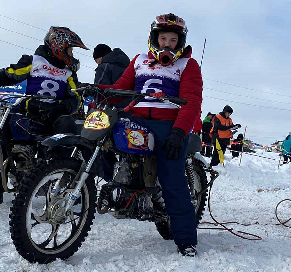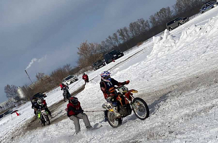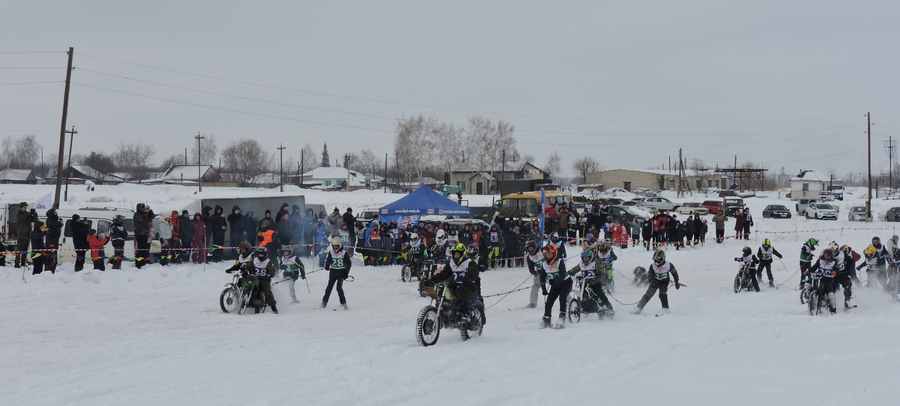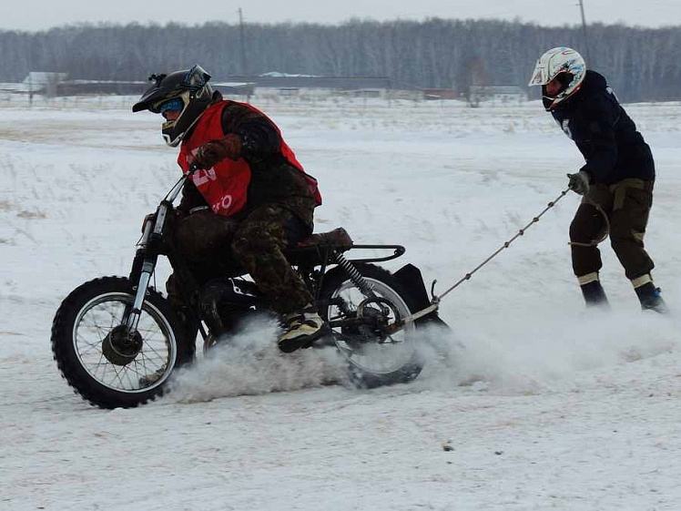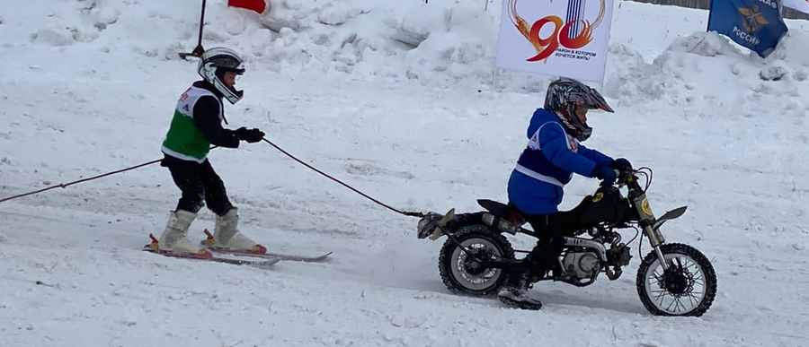 Скийоринг представляет собой гонку, в которой мотоциклист на тросе тянет за собой лыжника. Соревнования собрали рекордное количество участников — более 130 человек в пяти возрастных группах.