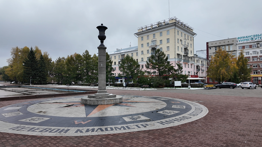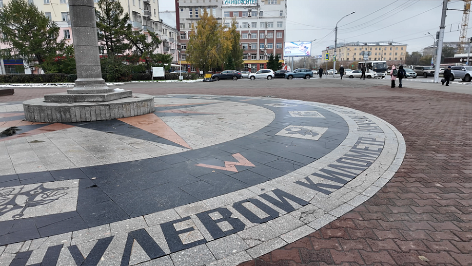 Третья колыванская ваза украшает нулевой километр. В 2003 году на площади Советов установили шестиметровый гранитный столб, символизирующий начало всех дорог для города и региона. На его вершине разместили вазу из порфира. Камень для неё добыли ещё в 1815 году на Коргонском месторождении. Этот материал считают редким и ценным. Вокруг памятника мастера уложили мозаику с изображением розы ветров и знаков зодиака.