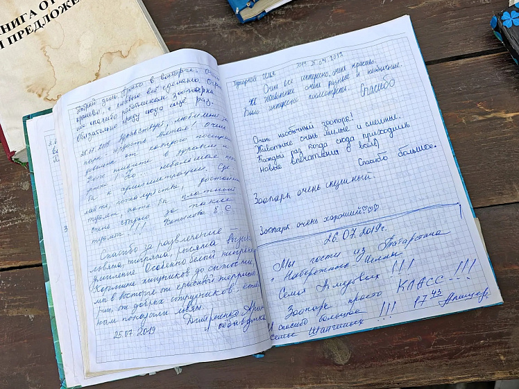 — Это сейчас любой может написать обращение в социальных сетях. А так люди подходили к сотрудникам и советовали, что можно сделать, просили купить тех или иных животных, делились мнениями о нашей работе. Мы купили амбарную книгу и положили её на видном месте. И люди начали писать. Вы знаете, я, наверное год начинал рабочий день, читая эти записи. Там такие перлы были, что все сотрудники включились в обсуждение этих записей и предложений. С тех пор повелось, что каждый год с открытия паркового сезона мы кладем новую книгу, так как старую за летний сезон исписывают полностью! — поделился Сергей Писарев.