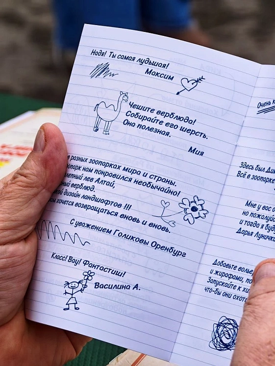 Директор зоопарка отметил, что со временем характер записей изменился. Если раньше было больше добрых пожеланий, интересных вопросов, то сейчас посетители, особенно молодого возраста стали оставлять странные рисунки и даже каракули.