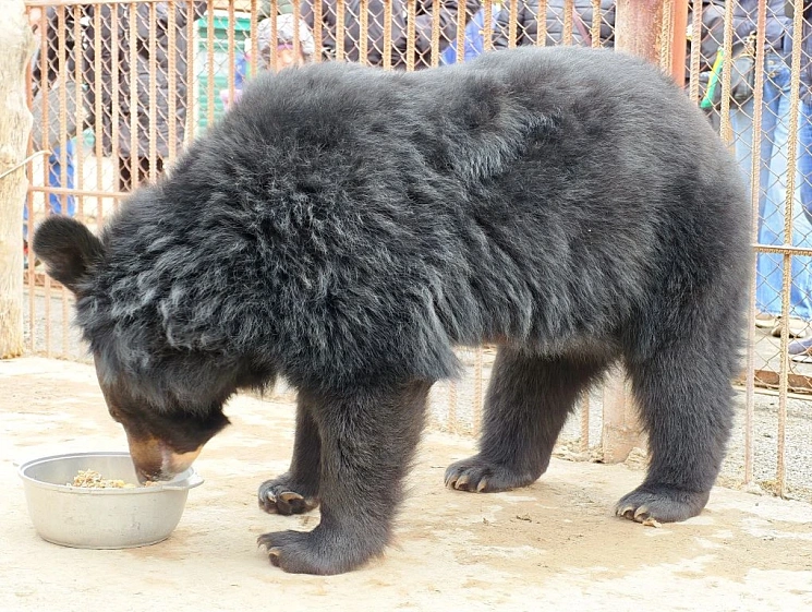 Катюша в это время перемещалась по вольеру от миски к миске, а мама Даша, притулившись в углу, украдкой ела мёд в сотах, которым её угостила смотритель.