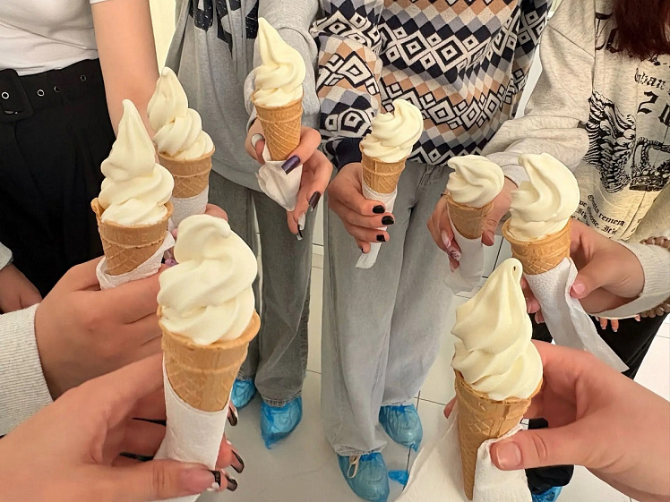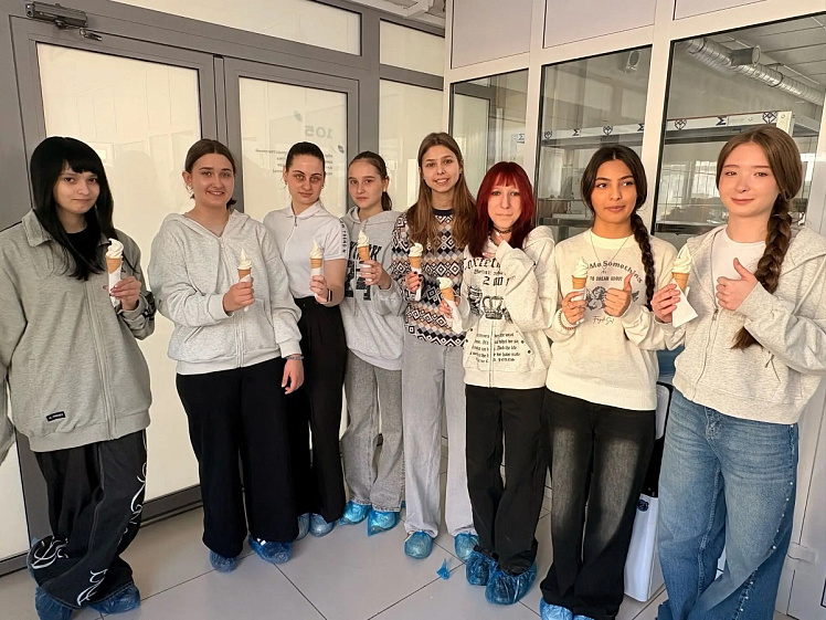 — Технологи молока изучают абсолютно всю продукцию, начиная от обычного молока и заканчивая сыром и прочими продуктами. У нас есть цеха для производства молочных консервов, плавленых сыров, мороженого, сырцех, кисломолочный цех и лаборатория качества. Наши студенты изучают сначала теорию, а потом проходят большой объём практических занятий, на которых сами вырабатывают различные продукты. Также у нас открыт свой научный клуб, в рамках которого мы разрабатываем новинки: творожные сырки с пчелиной пыльцой, йогурт с тыквой и многое другое, — рассказала участникам экскурсии Мария Гутова.