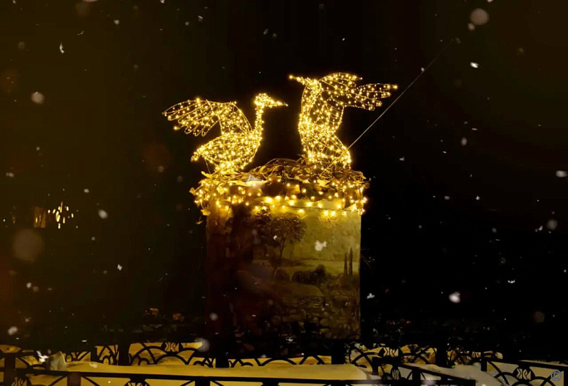 Этот район украсили эффектные световые инсталляции. Акцентными точками оформления стали светодиодные фонтаны: