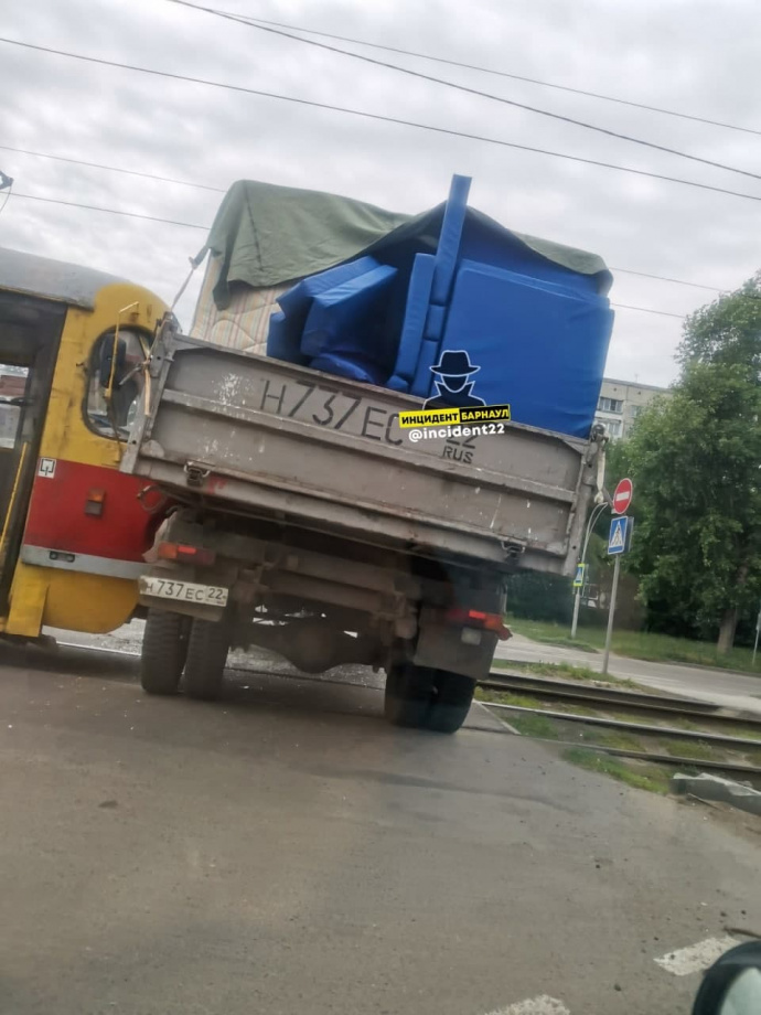 ДТП произошло сегодня, 28 июня 2021 года, в Барнауле на пересечении улиц Антона Петрова и Попова. Очевидцы в паблике «Инцидент Барнаул» в Telegram сообщили, что из-за столкновения трамвая и грузовика на дорогах образовываются большие пробки.