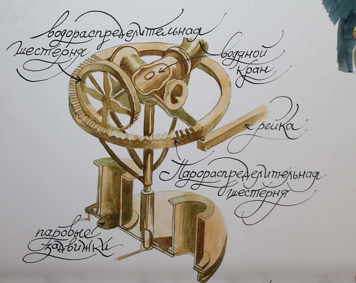 «Разумеется, образ Ползунова – собирательный, навеянный изучением полотен различных художников (в том числе и алтайского мастера графики Юрия Кабанова), изображавших изобретателя, — отметила иллюстратор. — Ценность этого издания еще и в том, что на его страницах впервые опубликованы архивные документы, среди которых — копия машины, созданная с эскиза самого Ползунова. Кроме того, при оформлении книги использован необычный шрифт – элементы славянской скорописи, созданной на основе полуустава».