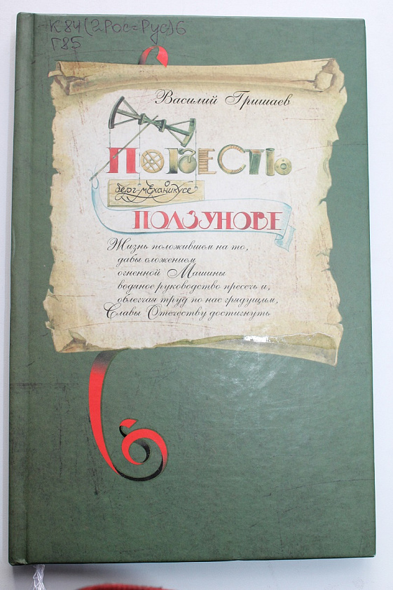 В книге краеведа Василия Гришаева подробно рассказывается о жизненном пути изобретателя Ползунова, которого привез из Екатеринбурга в наши края Андреас Беэр — начальник Колывано-Воскресенских заводов. Именно этого 18-летнего юнца порекомендовали ему взять в команду горных мастеровых, и тот проявил себя довольно быстро.
