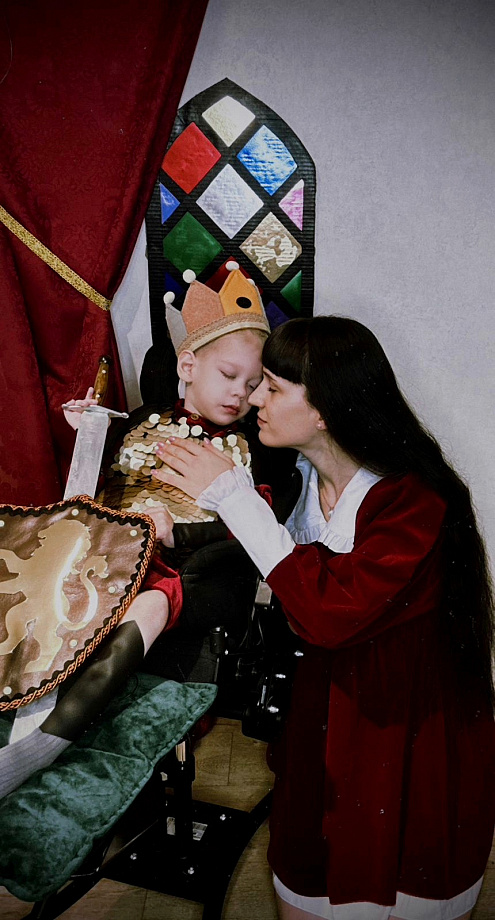 — Мы участвовали во всероссийском детском конкурсе красоты, заняли там третье место. Рассказывая о нашей семье Оксане Николаевне, я посетовала, что нет подобных событий для деток с особенностями. И вот спустя год на базе фонда родилась такая новогодняя традиция, в которой мы, конечно же, решили поучаствовать, — делится Анастасия, мама Саввы. — Сначала думали сделать костюм космонавта, потому что у моего сына одно время было такое прозвище. Оно появилось после выписки из роддома, потому что на моем малыше был костюмчик, сильно напоминающий скафандр. Но моя душа лежит к средневековым временам, потому что сама люблю эту тематику. Так и появился образ Короля. А непоколебимый — потому что сына всегда называют бойцом, так как он борется с таким тяжелейшим диагнозом.
