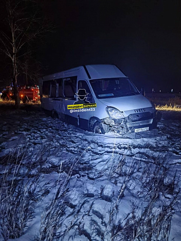 Авария произошла вечером 12 декабря 2021 года в Алейском районе. Рейсовый автобус съехал с дороги на обочину.