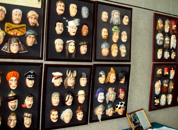 Здесь представлено свыше 50 масок известных деятелей политики, кино, музыки, истории.