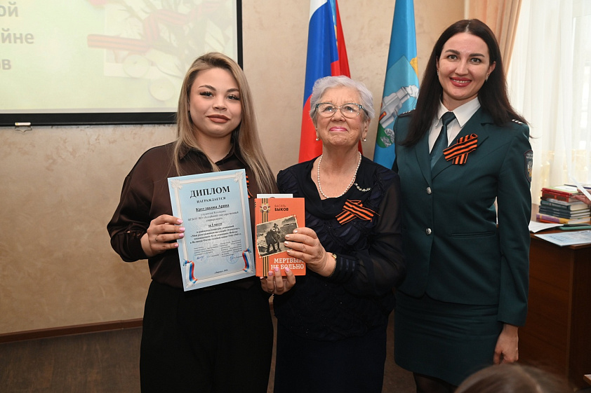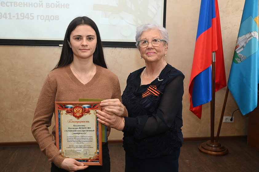 В номинации «За вклад в сохранение истории» жюри отметило сочинение Карины Баймайстрюк из колледжа АГУ, написанное от лица 11-летней девочки, проводившей отца на фронт. В сочинении подробно передан быт многодетной семьи, где она — старшая из детей: голод, холод, тревога за отца и взросление после известия о его гибели.