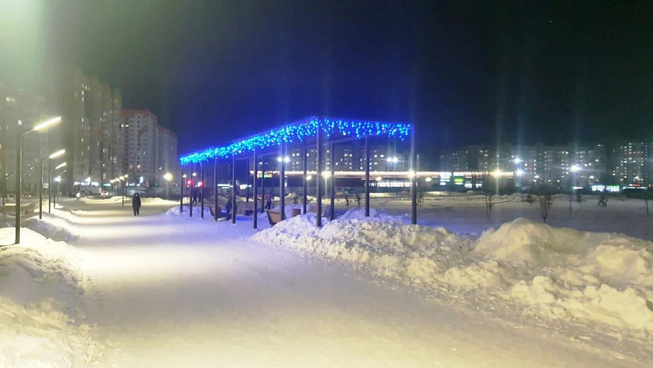 Ещё один новогодний арт-объект установили в Индустриальном районе краевой столицы «Жильё и городская среда». Зону отдыха там оформили светодиодной бахромой, пишет пресс-служба мэрии.