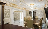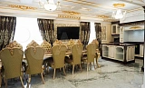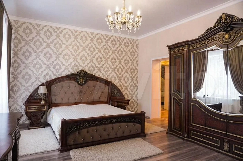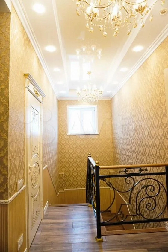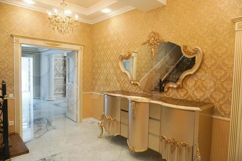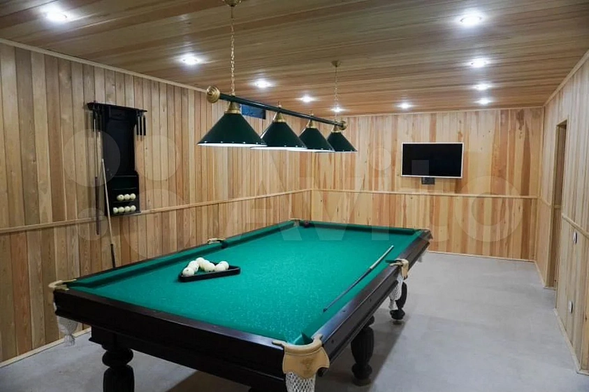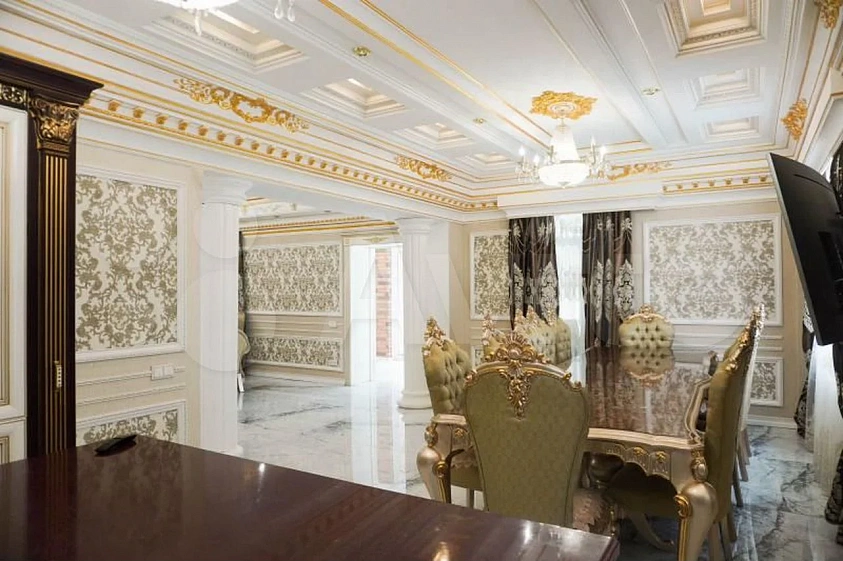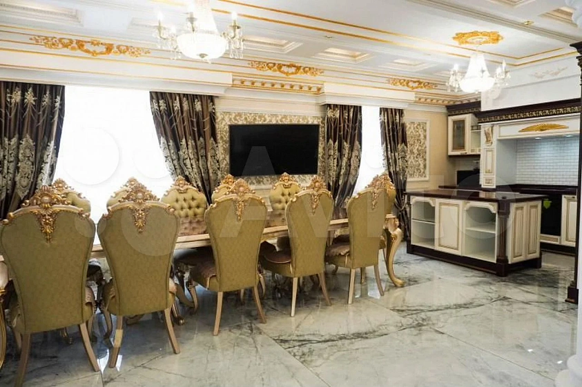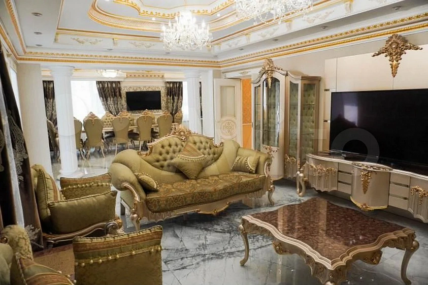 Дом имеет два этажа и ещё один цокольный. В нём четыре спальни, четыре санузла, сауна с душем, бильярдная комната, отдельная комната для стирки, глажки и сушки белья. Спортивный зал с кардио- и силовыми тренажёрами. Столовая и гостиная с дизайнерским ремонтом в стиле барокко. В коттедже есть веранда с выходом на террасу, которая оборудована для отдыха большой компании, мангальная зона и костровище.