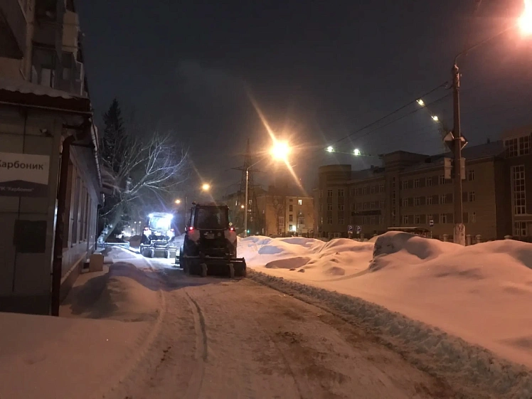 Тротуары механизированным способом очищали на улицах Мамонтова, Новосибирской, Инициативной, Пионеров, Суворова, Дальней, Советской, Сизова, Профинтерна, Воровского, 8 Марта, Профсоюзов, Парфёнова, Цеховой, на проспектах Калинина и Комсомольском.