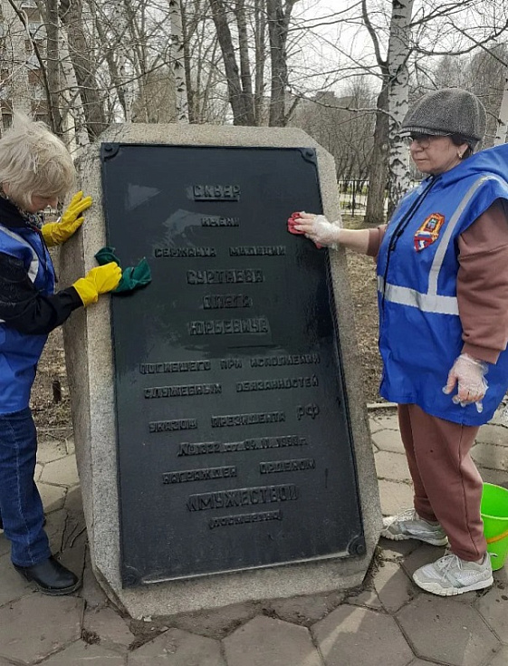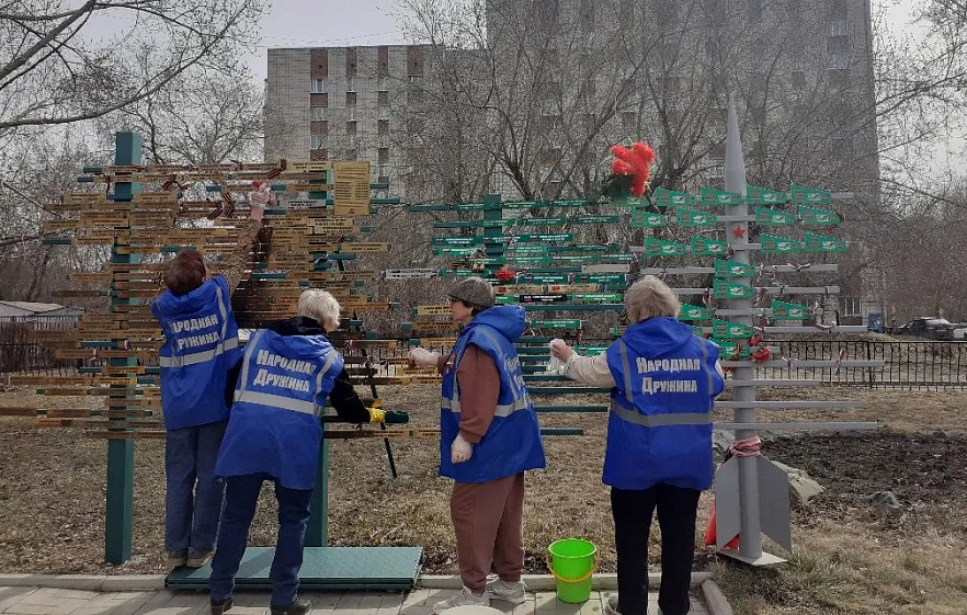 Представители звена «Серебряный патруль» районного Союза пенсионеров и отряда Ленинского района народной дружины «Барнаульская» навели порядок в сквере имени Олега Суртаева. Активисты убрали территорию мемориального комплекса и удалили с памятных объектов пыль и другие загрязнения.