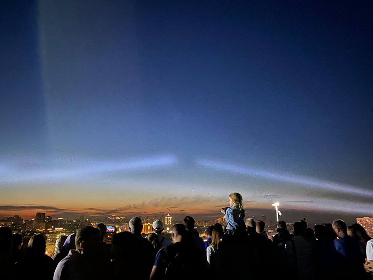 Вчера в Нагорном парке акцию барнаульцы всех возрастов. Те, кто не смог прийти, наблюдали за лучами из разных точек города.