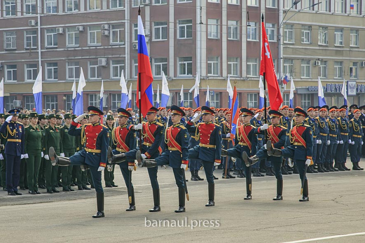 Утром 9 Мая начнутся официальные праздничные мероприятия. Сначала на Мемориале Славы возложат цветы, после этого запланировано торжественное прохождение войск Барнаульского гарнизона на площади Советов с участием парадных расчётов, знамённой группы и сводного гарнизонного оркестра. На площади Сахарова состоятся основные мероприятия. Они закончатся в 22:00 праздничным фейерверком.