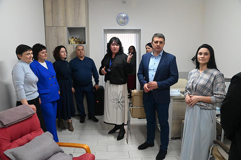 Директор Центра Елена Измайлова провела экскурсию и показала, чем оборудовано учреждение и какие формы работы реализует. Так, здесь оказывают юридическую помощь, в психологической помощи есть возможность использовать аппарат биологической обратной связи, доступно социально-реабилитационное оборудование, медицинский массаж, массажное кресло с нулевой гравитацией, система свето-звуковой стимуляции для снижения стресса и восстановления сна, сенсорная комната, дети могут провести время за песочной терапией — все услуги оказывают в соответствии с состоянием здоровья обратившихся.