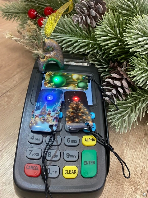 В продаже появились три вида брелоков с праздничным оформлением. Их отличительная особенность — встроенный светодиод, который загорается каждый раз при взаимодействии с транспортным терминалом во время оплаты проезда.