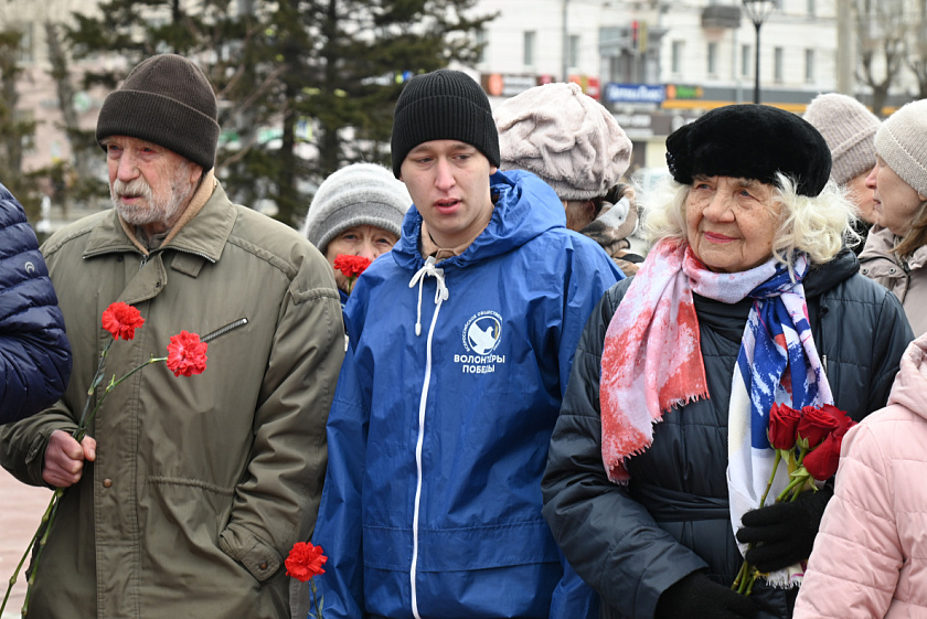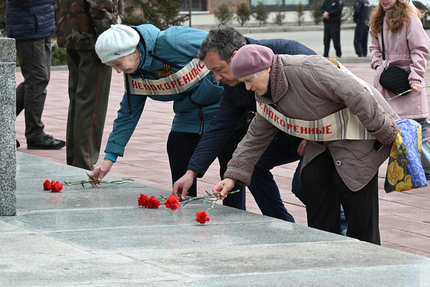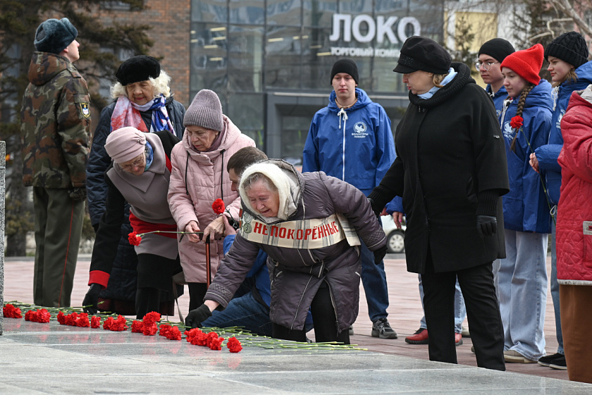 В Барнауле к Мемориалу Славы пришли бывшие узники фашистских концлагерей, труженики тыла, руководители и члены ветеранских организаций, воспитанники Центра «Память „Пост № 1“», общественники. В церемонии возложения цветов также приняли участие глава администрации Железнодорожного района Андрей Данькин, председатель комитета по социальной поддержке населения Барнаула Татьяна Королёва, председатель комитета по делам молодёжи городской администрации Александр Штебнер, представители Министерства социальной защиты Алтайского края.