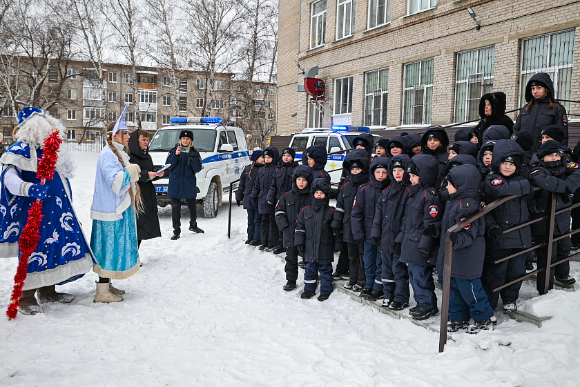 В этот же день к учащимся правоохранительных классов пришли Дед Мороз и Снегурочка. Но вот незадача: где же подарки? Их украли? Первоклассники принялись расследовать это новогоднее дело вместе с полицейскими. Особую роль в расследовании сыграл кинолог со своим верным помощником — немецкой овчаркой по кличке Карбон. Благодаря острому нюху служебной собаки по потерянной варежке удалось найти похитителя. В конечном итоге он был найден, подарки возвращены. Кадеты первых правоохранительных классов радостно исполнили танцевальный флешмоб.