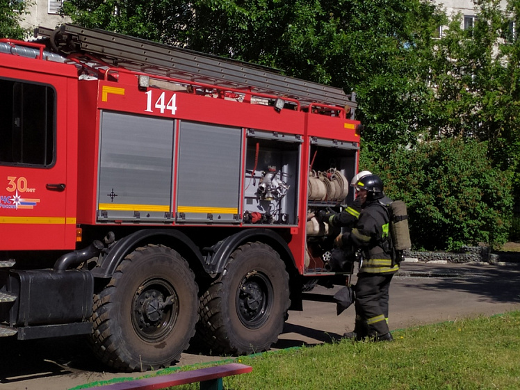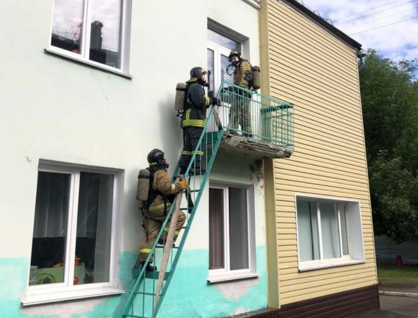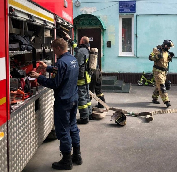 Такая противопожарная тренировка состоялась в Железнодорожном районе на базе детского сада № 107.