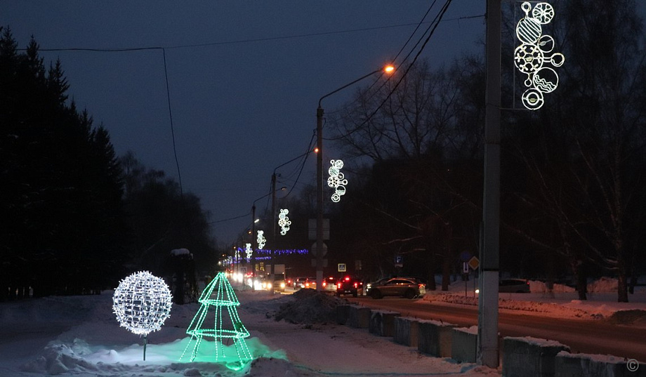 Районы Барнаула продолжают оформлять к Новому году. На главной площадке Ленинского района — площади Мира — появилась 12-метровая искусственная ель, на её ограждении разместили баннеры, смонтировали световой потолок, установили разные световые фигуры.