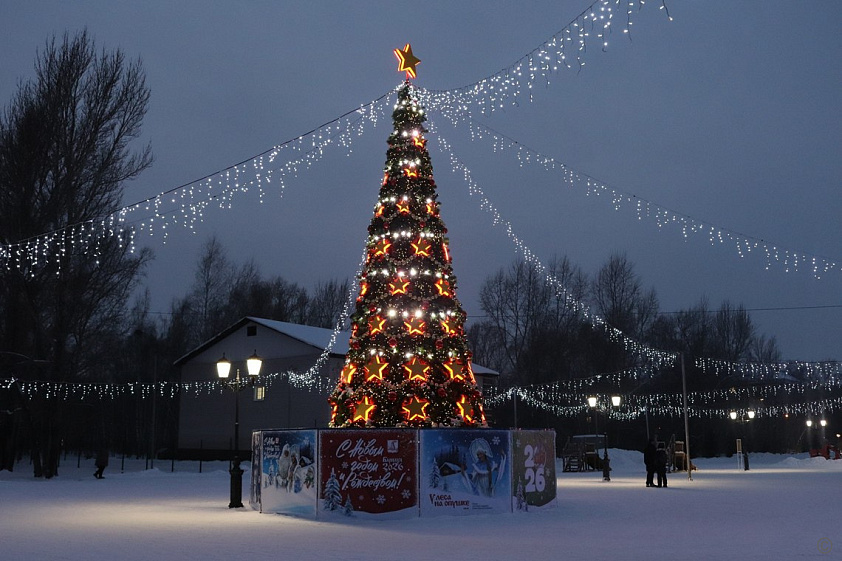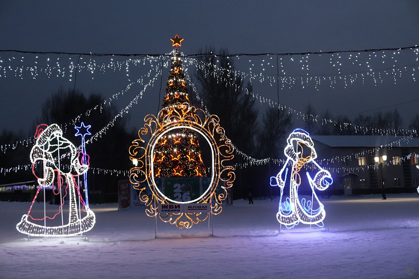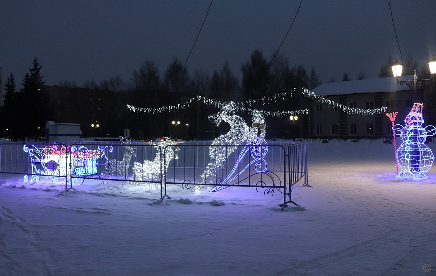 На территории района предприятия и организации устанавливают возле своих зданий фигуры сказочных героев и ели. Помимо этого они украшают входные узлы иллюминацией.