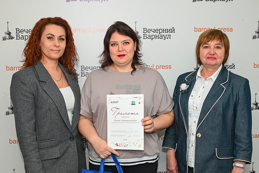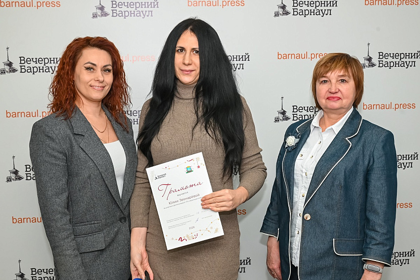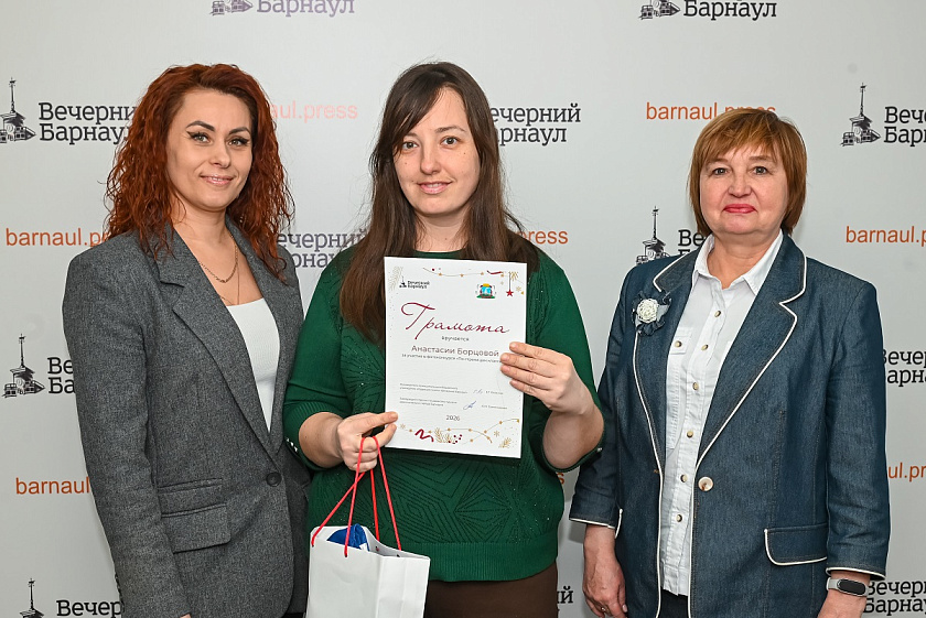 С помощью генератора случайных чисел были определены победители конкурса, которых и пригласили в редакцию. Призы и дипломы им вручили руководитель муниципального бюджетного учреждения «Редакция газеты “Вечерний Барнаул”» Елена Язовская, заместитель заведующего отделом по развитию туризма администрации Барнаула Елена Гуглер и главный редактор информационного портала «Вечерний Барнаул» Яна Бакланова.