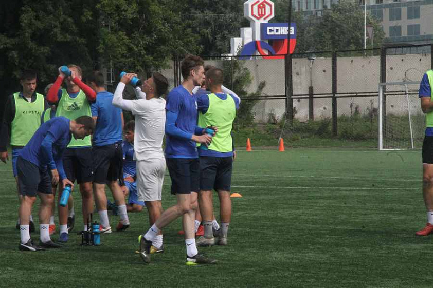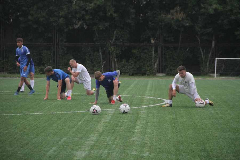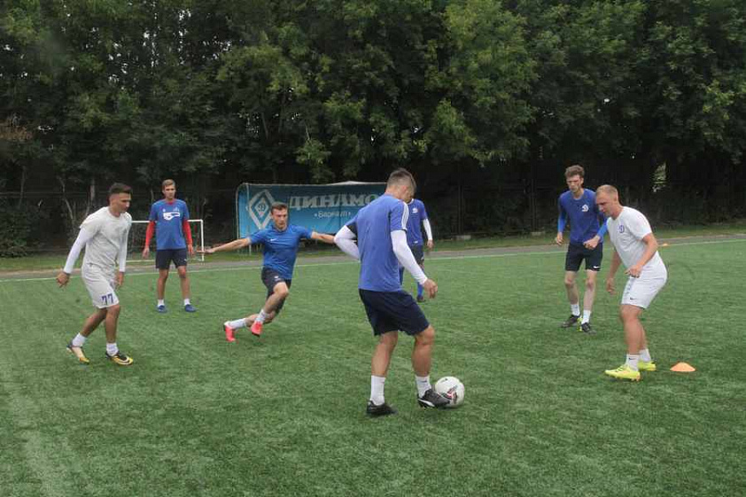 Первыми на искусственном поле спортивной базы «Трансмаш» появляются главный тренер «Динамо-Барнаул» Олег Яковлев и его помощник Анатолий Панченко. Ещё один тренер динамовцев Виталий Вихлянов, с этого сезона работающий в клубе, временно отбыл решать семейные вопросы домой в Казахстан. Пока Яковлев и Панченко расставляют фишки на газоне, подтягиваются футболисты. Одним из последних появляется главный бомбардир бело-голубых нынешнего состава Владимир Завьялов.