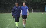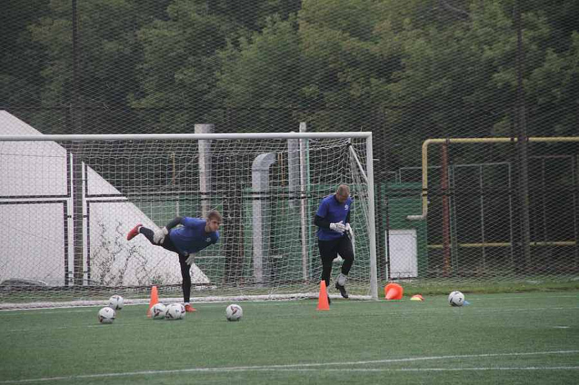 Перед началом тренировки Олег Яковлев о чём-то говорит с голкипером Богданом Карюкиным, рассматривая какую-то бумагу. Есть ощущение, что опытнейший вратарь понемногу становится ассистентом тренера.