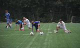 Начинается всё с пробежки, затем команда разбивается на две группы, играют в квадрат, отрабатывают комбинации.