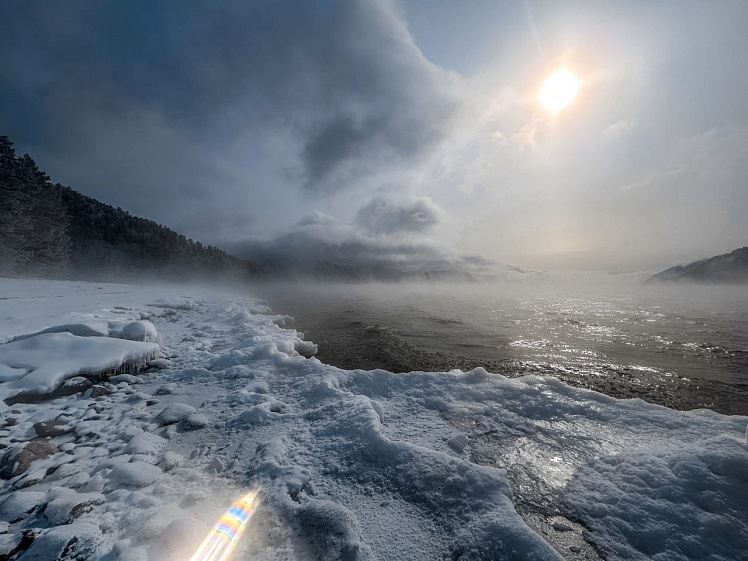 Сотрудники Алтайского биосферного заповедника поделились снимками Телецкого озера, сделанными в первые числа марта. На фотографиях видны морозные туманы и ветви деревьев, покрытые изморозью.