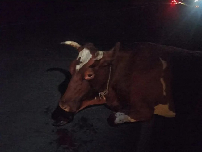 По словам пользователей соцсетей, корова на трассе появилась в тёмное время суток неожиданно. Поэтому водитель не смог предотвратить ДТП и сбил животное в районе села Сростки в Алтайском крае.
