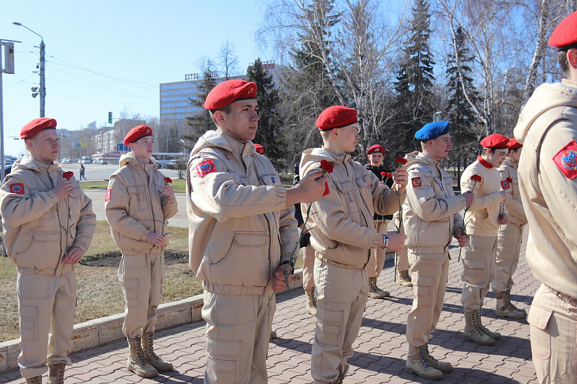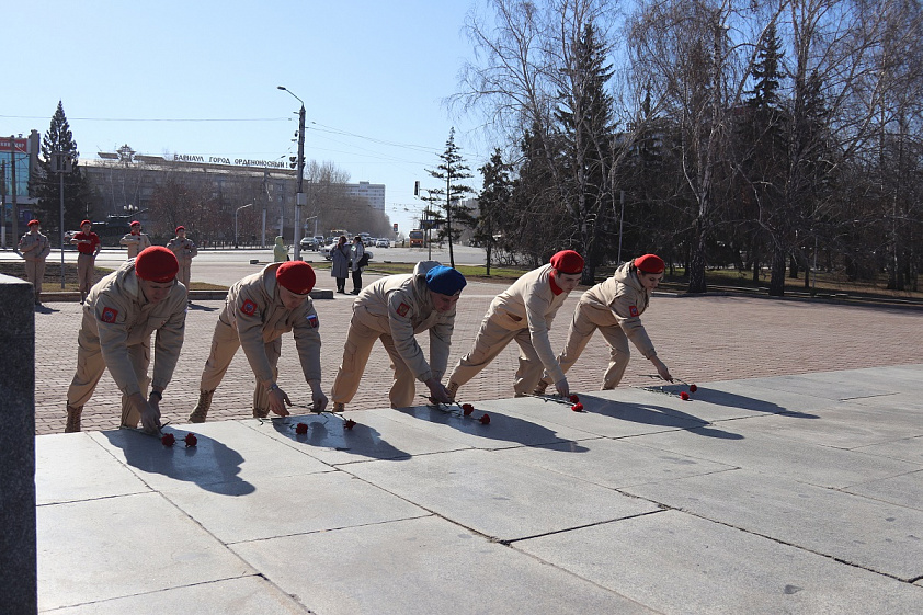 Утром воспитанники патриотических клубов Барнаула «Зарничник» и «Борец» возложили цветы к Мемориалу Славы. Дальше их ждала поездка в посёлок Шадрино на стрелково-стендовый комплекс «Алтайский стрелок».