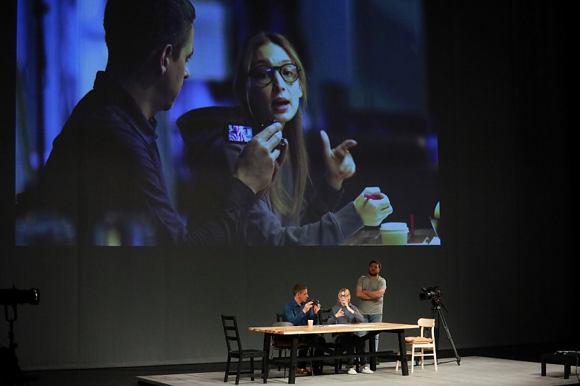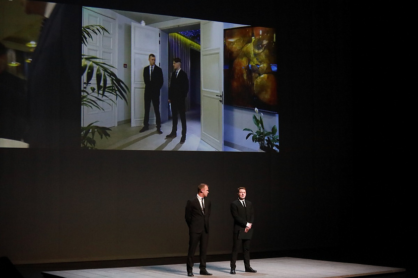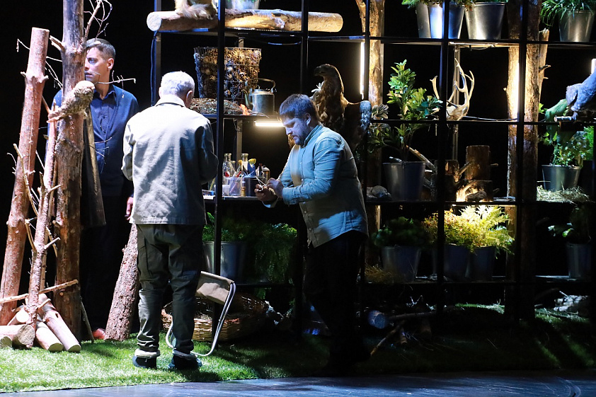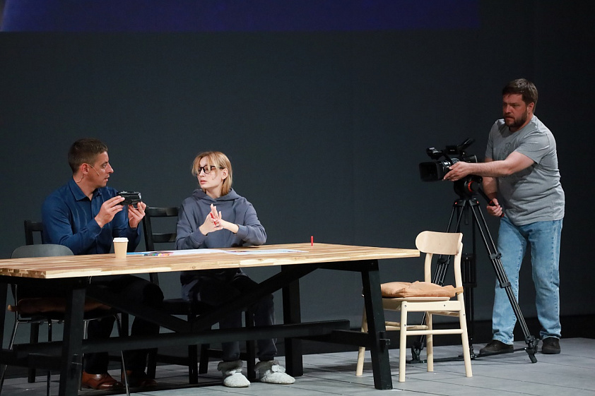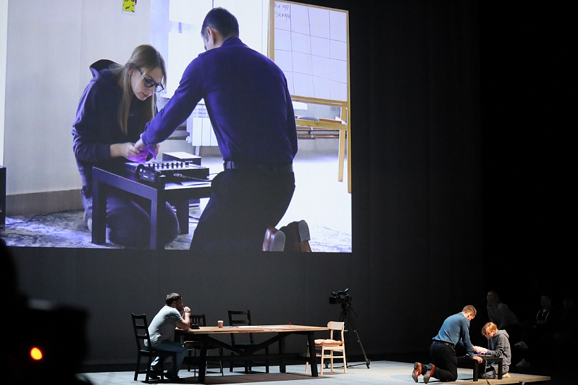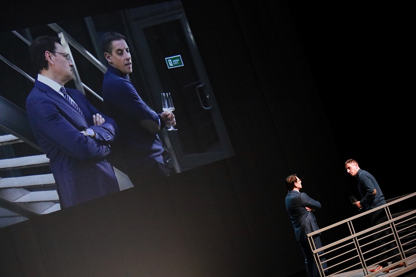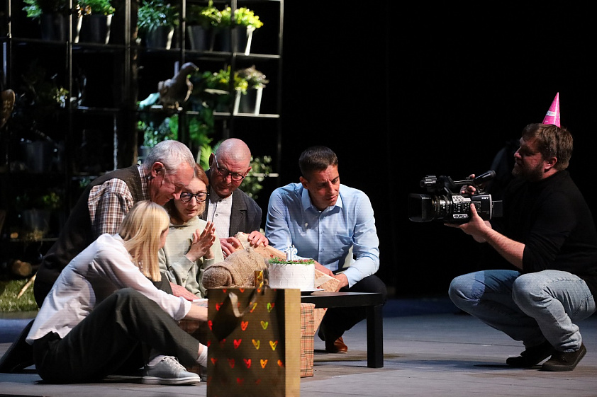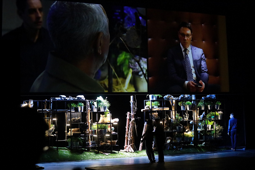 Кроме осовремененного сюжета, в котором нашлось место и аутизму дочери Мартина Берга Хильды, и нарушению экологического законодательства — ведь именно незаконные рубки и продажи леса привели старика Берга на скамью подсудимых, спектакль поражает зрителей режиссёрской находкой. Тимофей Кулябин превратил его в «фильм в квадрате»: действие происходит и на сцене, и на висящем над сценой экране, то почти совпадая, то рассказывая параллельные истории. Кроме того, Мартин Берг снимает фильм к 16-летию своей дочери, ведь только через видеокамеру девочка-аутист может общаться с окружающим миром. Фильм, который видит зритель на экране, сделала режиссёр Анастасия Журавлёва. Его снимали в лофте новосибирского бизнес-центра на Красном проспекте. Актёры предстают в нём то в пространстве делового офиса, играя гостей корпоративного праздника Верле-старшего, то в отеле, куда заселяется Томас, лишь бы не жить с отцом под одной крышей, то в квартире-фотостудии, где живёт с семьёй Мартин Берг.