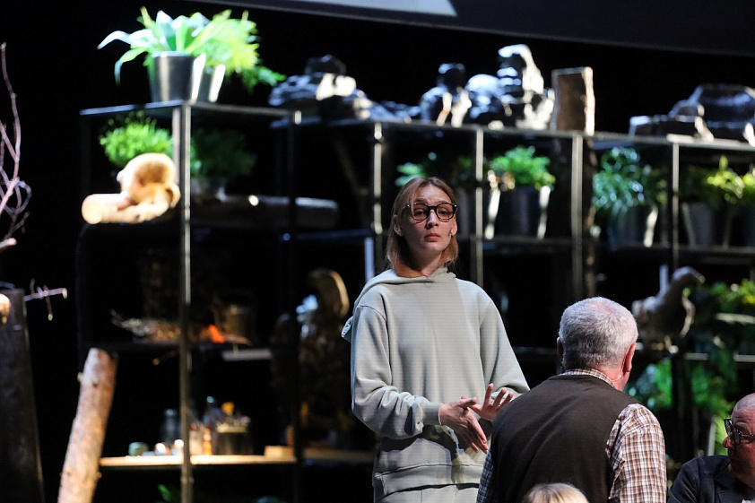 Знаменитый режиссёр Тимофей Кулябин подарил барнаульской публике возможность увидеть современную интерпретацию пьесы Ибсена. Сцена в спектакле превращалась то в бизнес-центр, то в жилую квартиру и даже в мистический лес. Экологическая система, главной жизненной формой которой являются деревья, стала центральной локацией сюжета, хотя и появляется перед глазами всего пару раз. Но именно здесь звучит роковой выстрел, разрушивший жизнь героев.