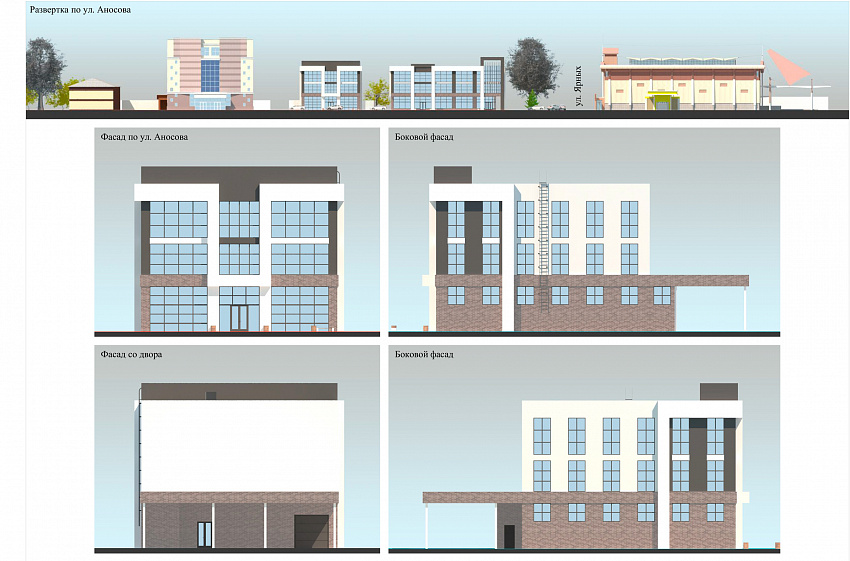 Объект розничной торговли по адресу ул. Аносова, 6а/1 разработала «Мастерская Золотова». Представлял эскизный проект архитектор Владимир Золотов.