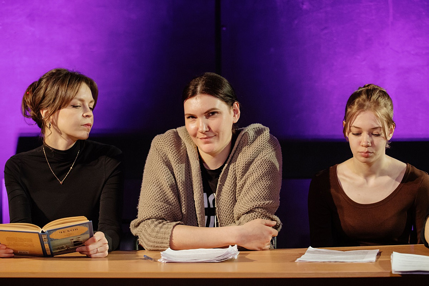 По словам Артёма Терёхина, репетиции ещё не вынесены на сцену, а значит до сих пор идёт застольный период работы над спектаклем — то есть этап обсуждений материала, «распаковки» смыслов, заложенных Чеховым столетие назад.