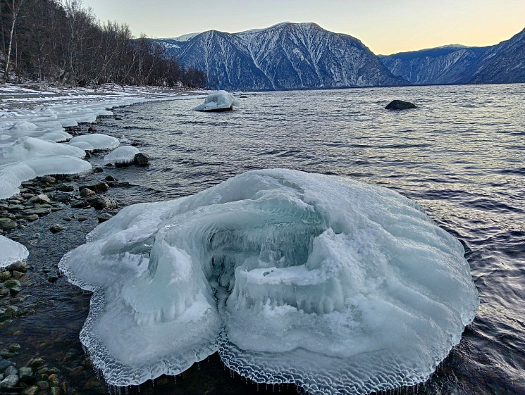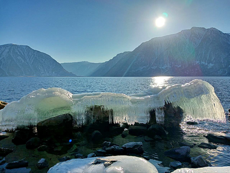 Как отметили в телеграм-канале Алтайского биосферного заповедника, на берегах озера зафиксировали скульптуры в виде «наплесков» — ледяных панцирей на скалах и валунах и «брызговых оледенений» в виде тысячи сосулек и натёков на крутых склонах.