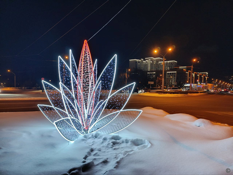 На пересечении улицы Молодёжной и проспекта Социалистического установили композицию «Снегири». На проспекте Красноармейском деревья украсили световыми кольцами, а на площади Советов появились декоративные элементы «Фонари» и «Свечи».