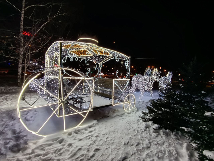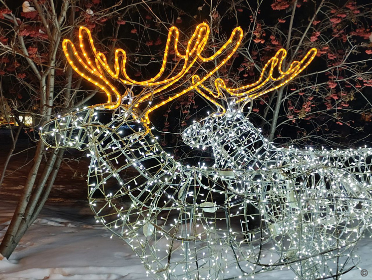В сквере 60-летия СССР установили «Светодиодное дерево» и фигуры «Олени с санями», на проспекте Красноармейском — инсталляцию «Павлин».