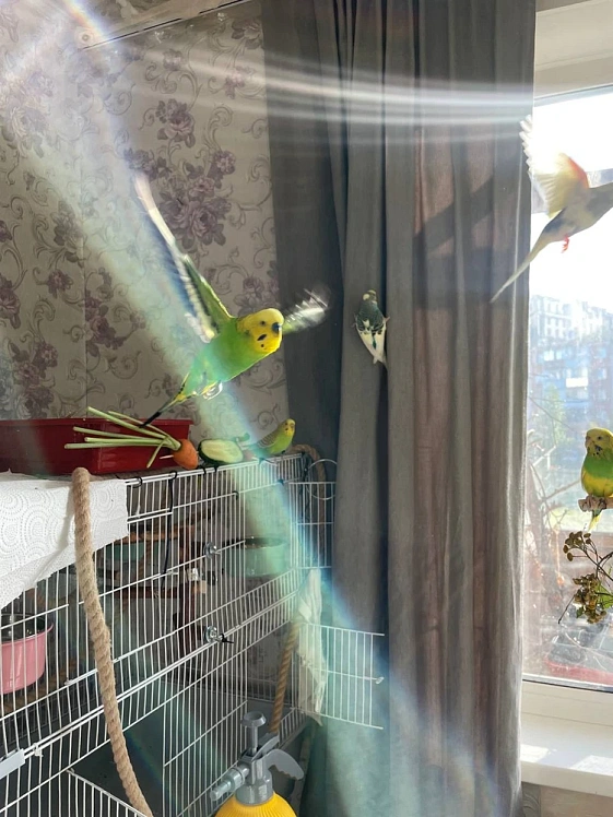 Уборку в квартире Ангелина делает каждый день, а воздух очищает бактерицидный рециркулятор. Несмотря на то, что птицы довольно шумные, с соседями проблем не возникло.