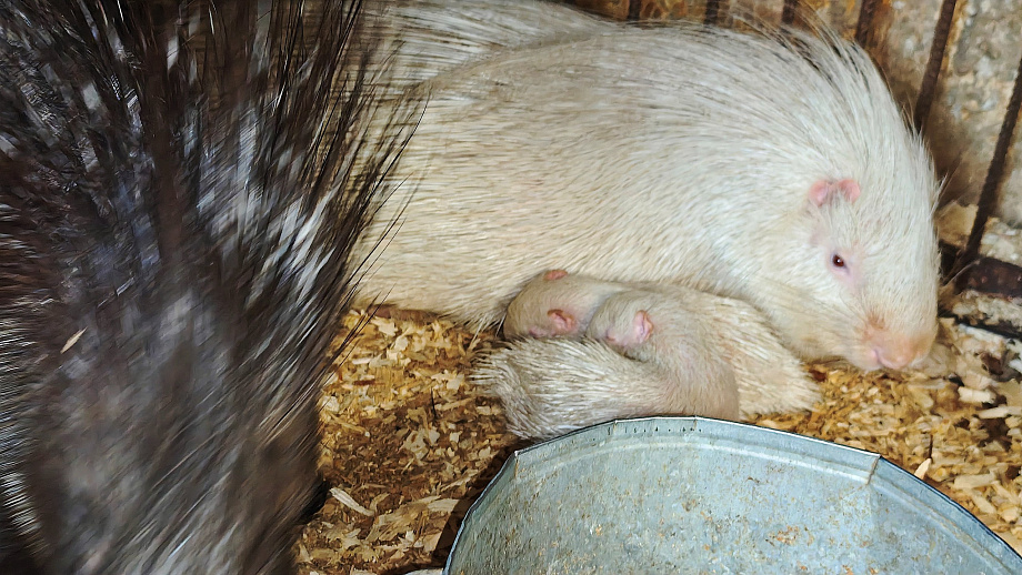 Дитёныши колючих грызунов растут и крепнут в городском зоосаде.